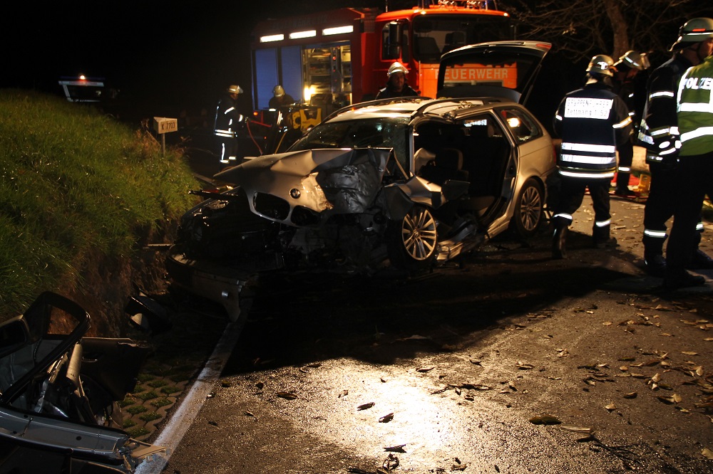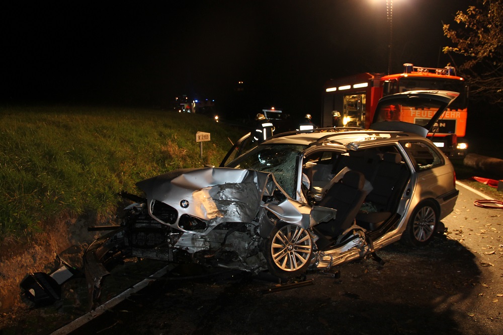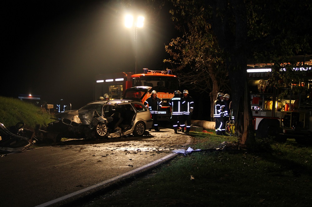 Die Abteilungen Langnau und Tettnang der Freiwilligen Feuerwehr Tettnang wurden am Morgen des 1. November zu einem schweren Verkehrsunfall auf der K7703 alarmiert: