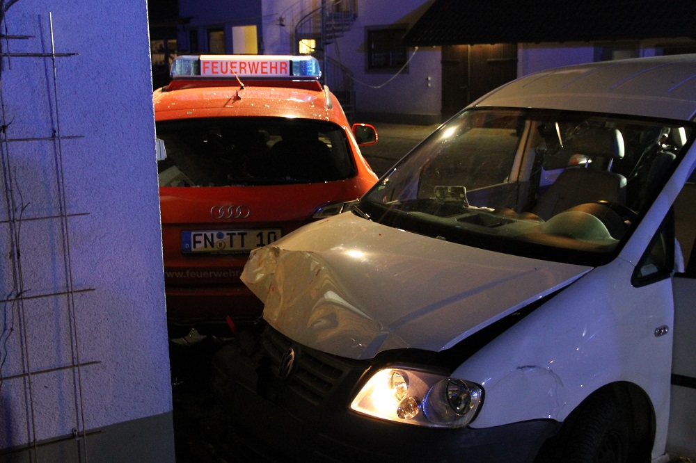 Es stellte sich heraus, dass der Fahrer eines VW Caddy mit seinem Fahrzeug aus noch ungeklärter Ursache von der L 333 abkam und daraufhin in den Hof eines landwirtschaftlichen Anwesens fuhr. In dem Hof prallte der Caddy in das Heck des dort geparkten Kommandowagen der Feuerwehr Tettnang.