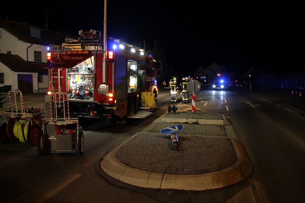Die Abteilung Tettnang sowie der Löschzug Kau der Freiwilligen Feuerwehr Tettnang rückten am Freitagabend um 19:42 Uhr zu einem Verkehrsunfall nach Tettnang-Walchesreute aus: