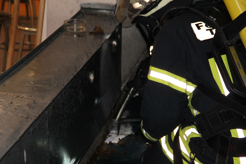 An einer Parkdeck-Auffahrt brannte die Dämmung in einer Fuge. Die Dämmung wurde entfernt und abgelöscht. Anschließend wurde die Brandstelle mit der Wärmebildkamera kontrolliert.