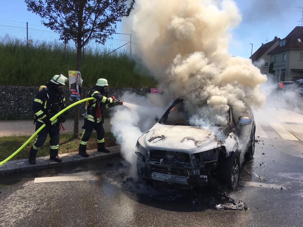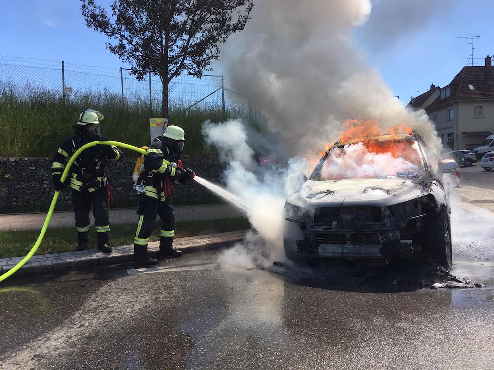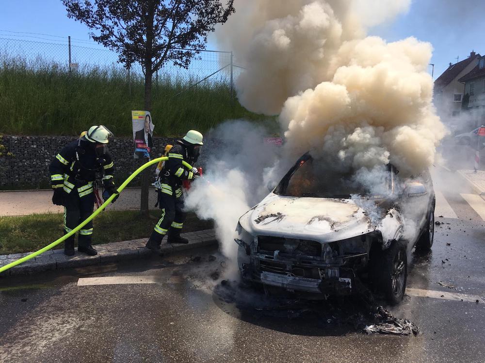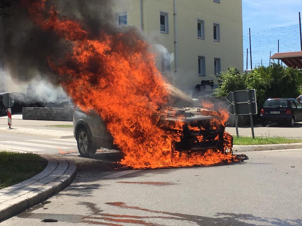 Während sich die Kameraden von den Feuerwehren Friedrichshafen (Abteilung Ailingen), Eriskirch und Tettnang am Tettnanger Torschloss zu einer "Feuerwehrhochzeit" zum Spalierstehen versammelten ging ein F1-Alarm ein. Am Kreisverkehr in Tettnang-Bechlingen stand ein PKW in Vollbrand.