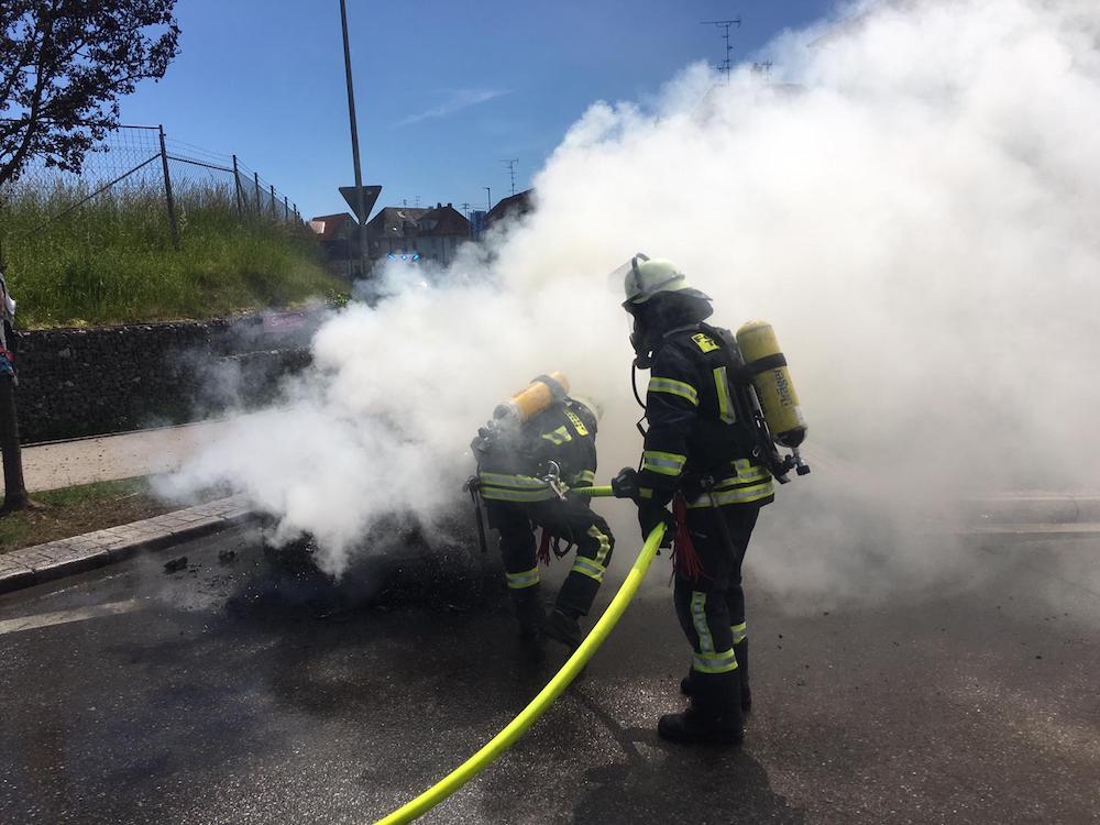 Mit einem C-Rohr wurde der Wagen von einem Trupp unter Atemschutz abgelöscht.