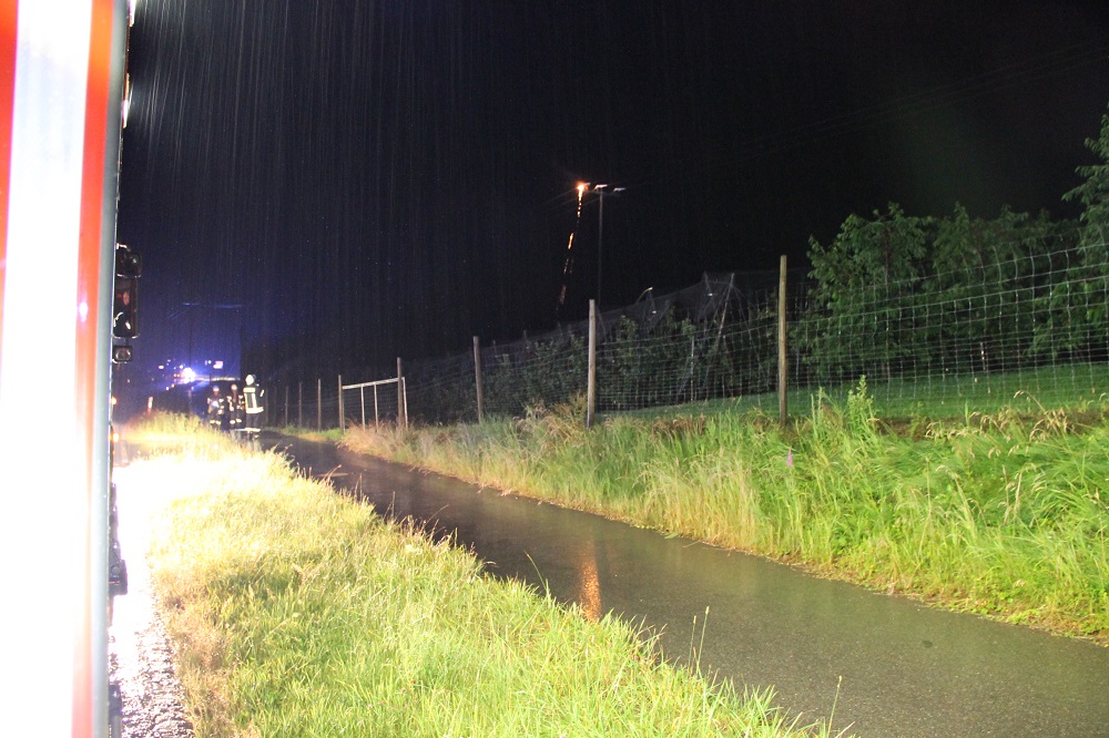 Wenn die Kameraden der Feuerwehr Tettnang in der Nacht zum Dienstag nicht durch den Platzregen, die gewaltigen Donnerschläge oder durch die hellen Blitze aufgewacht sind, dann spätestens durch das Piepsen des Funkmeldeempfängers: Ein Anrufer hatte mitgeteilt, dass eine Oberleitung glühen bzw. brennen würde.