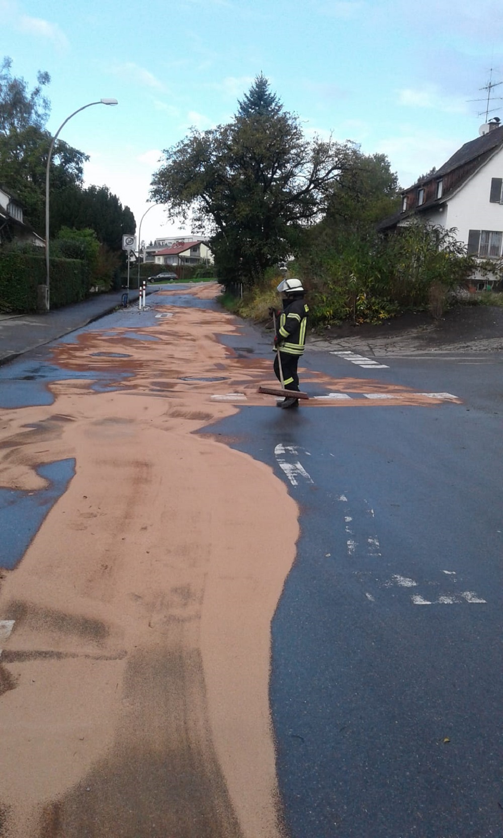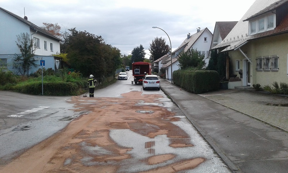 In Tettnang wurde eine Ölspur aufgenommen und Ölspurschilder gesetzt.