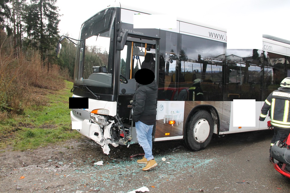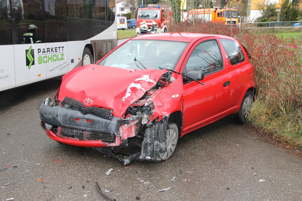 Die Feuerwehr Tettnang wurde zu einer Rauchentwicklung nach einem Verkehrsunfall zwischen einem PKW und einem Bus gerufen. Beim Eintreffen der Einsatzkräfte waren die 12 Kinder, welche in dem Bus saßen, unverletzt und hatten den diesen beim Eintreffen der Feuerwehr bereits verlassen. Die Rauchentwicklung stellte sich als ein qualmender, ausgelöster Airbag heraus. Die Betriebsstoffe wurden aufgenommen und der PKW für das Abschleppen vorbereitet.