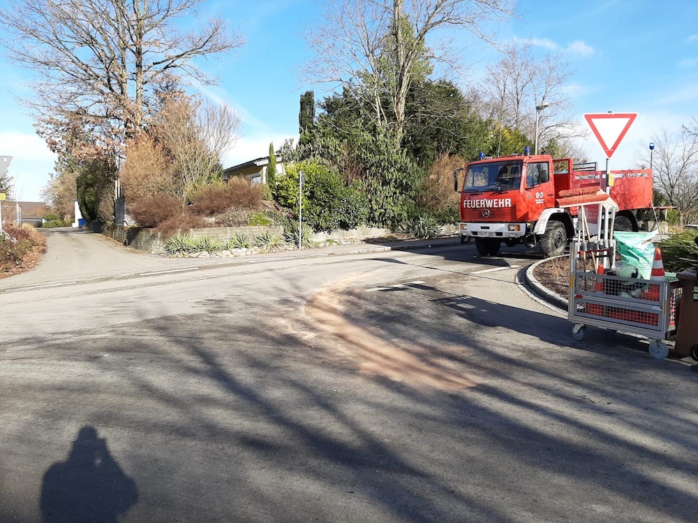 Ein PKW verursachte durch einen Defekt eine etwa 50 Meter lange Dieselspur. Die Feuerwehr beseitigte die Dieselspur.