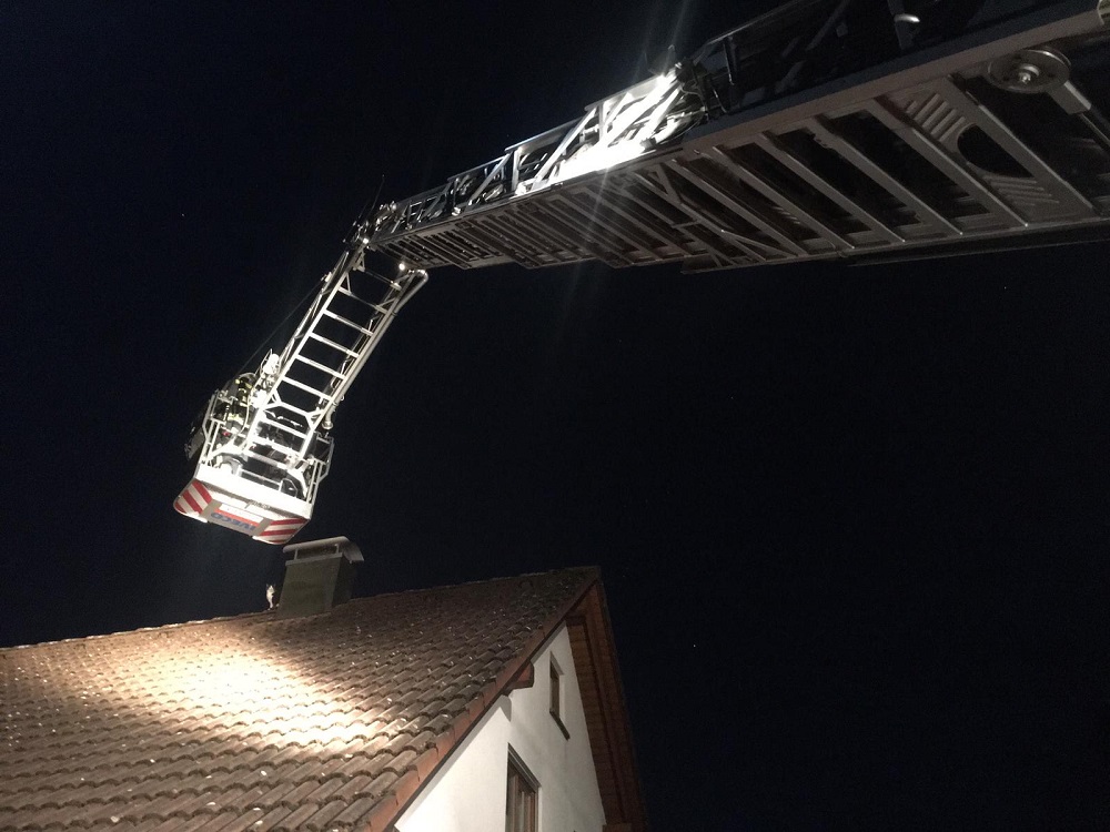 Die Leitstelle Bodensee-Oberschwaben alarmierte den Zugführer vom Dienst zu einem Wohnhaus: Die Besitzer einer Katze meldeten, dass ihr Tier seit Stunden auf dem Dach ist und nicht mehr herunterkommt. Die Feuerwehr rettete die Katze mit der Drehleiter und übergab diese an die Besitzer.