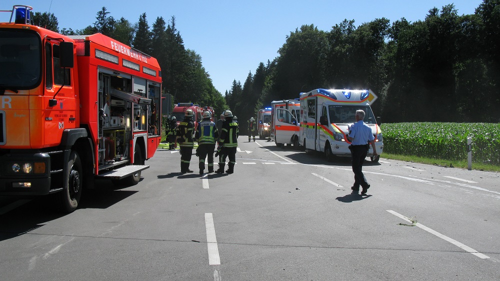 Aufgrund der Anzahl der Verletzten (eine schwer verletzte, eine mittelschwer verletzte und vier leicht verletzten Personen) war der Rettungsdienst unter anderem mit vier Rettungswagen, einem Rettungshubschrauber und Notarzt vor Ort.