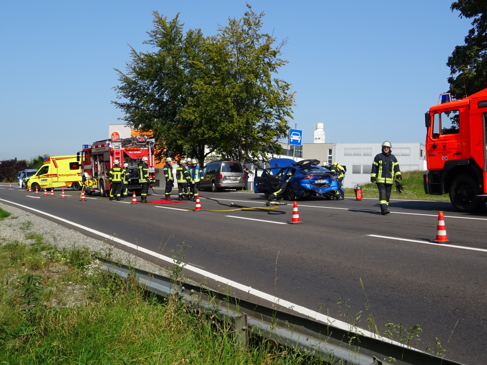 Auf der B 467 kam es zu einem Auffahrunfall zwischen mehreren Fahrzeugen. Durch den Aufprall wurde die Batterie eines PKW mechanisch stark beschädigt, wodurch hin diese ausgaste und dampfte.