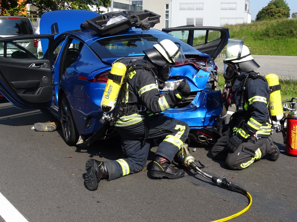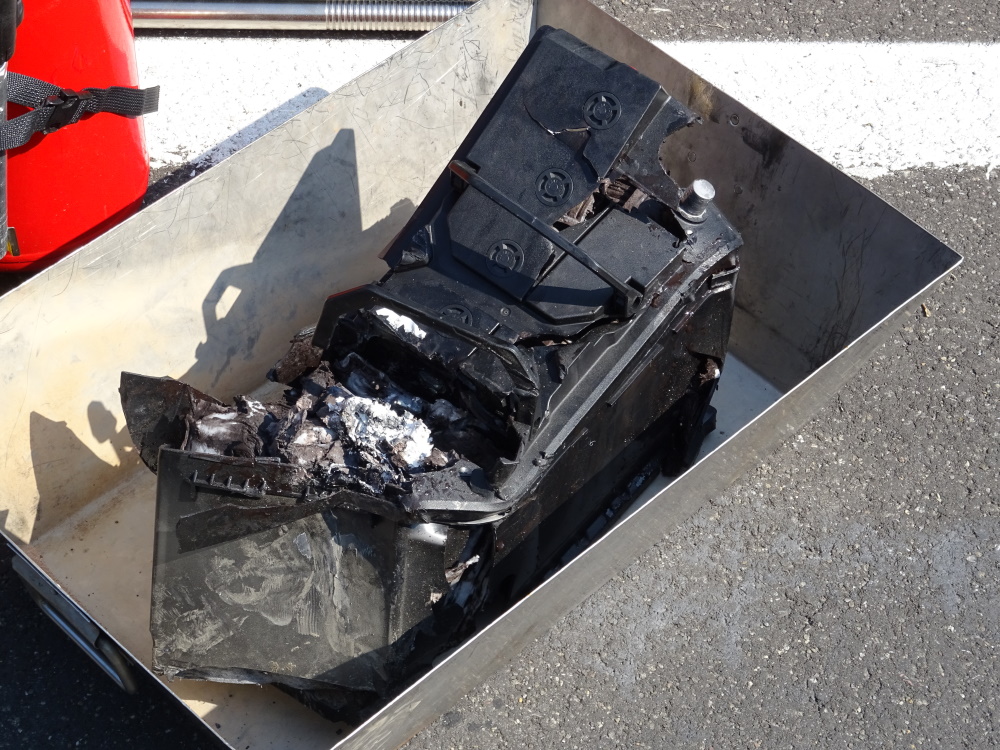 Aus Brandschutzgründen wurde der Kofferraum mit dem hydraulischem Spreizer geöffnet, um die im Kofferraum befindliche Batterie auszubauen.