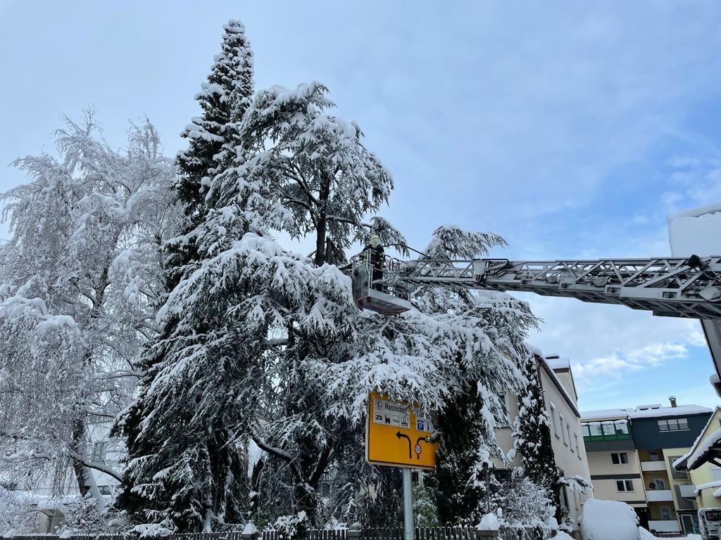 Ein angebrochener Ast wurde mit der Drehleiter entfernt.