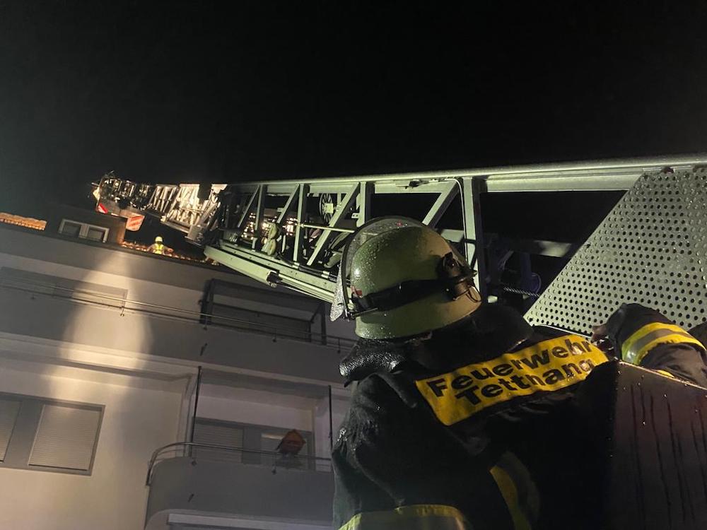 - Überlandhilfe: Drehleiter zu Sturmschaden an einem Dach