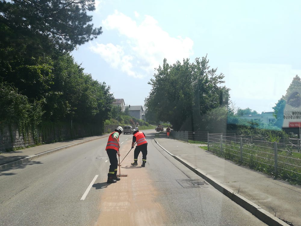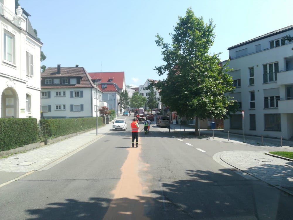 Eine größere Hydraulikölspur war auf Tettnangs Straßen sichtbar. Die Spur verlief von der Kirchstraße, über den Bärenplatz bis in den Oberhof.