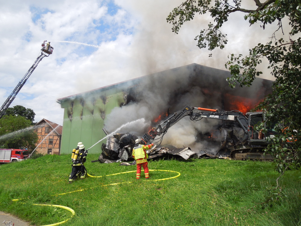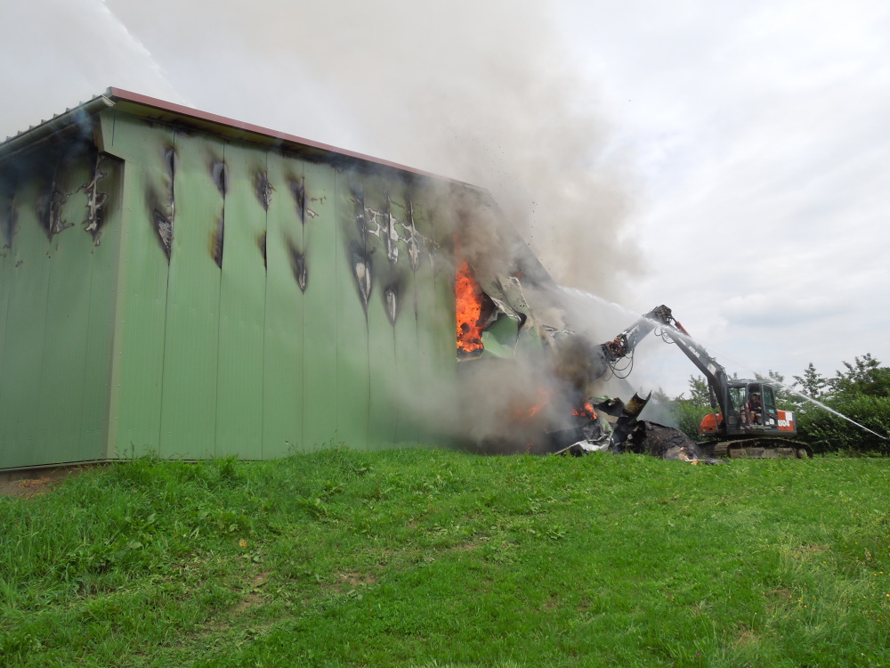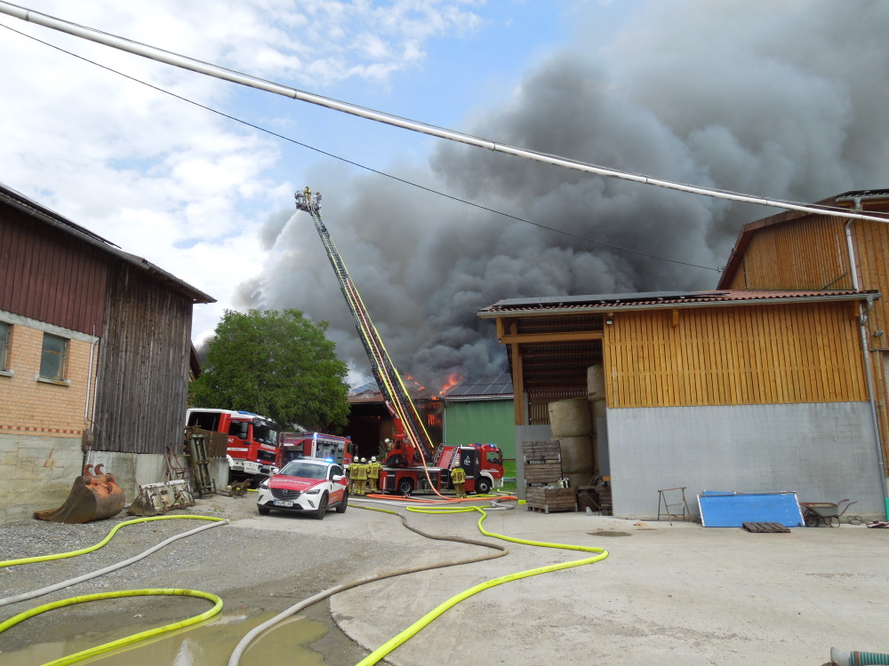 Die Feuerwehr Tettnang wurde zur Überlandhilfe zu einem Großbrand nach Laufenen bei Brochenzell alarmiert. Dort stand die Halle eines landwirtschaftlichen Anwesens in Vollbrand.