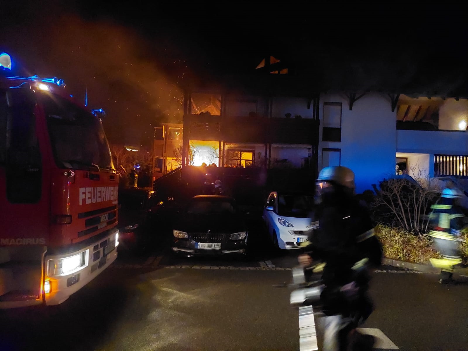 F2 - Balkon von Mehrfamilienhaus in Vollbrand, vier Personen gerettet