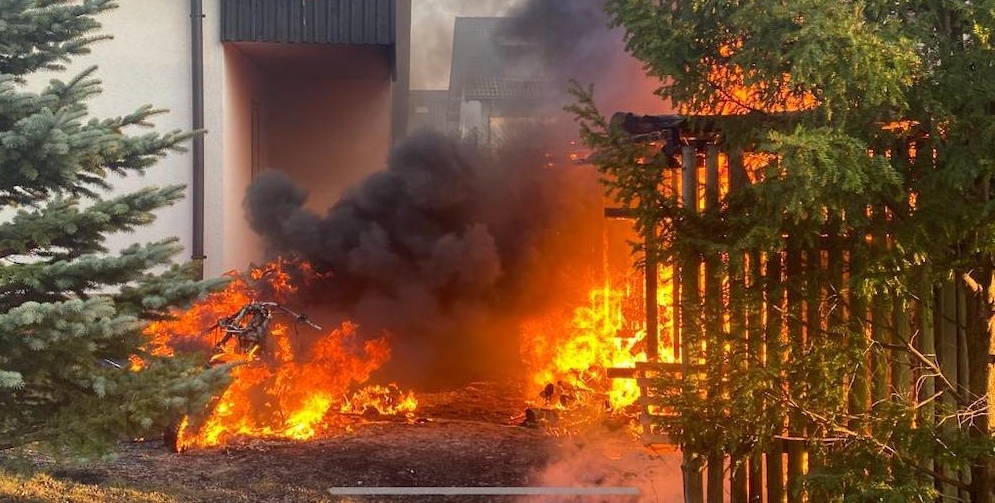 F2 - Brennt Motorrad, Übergriff auf angrenzende Bebauung