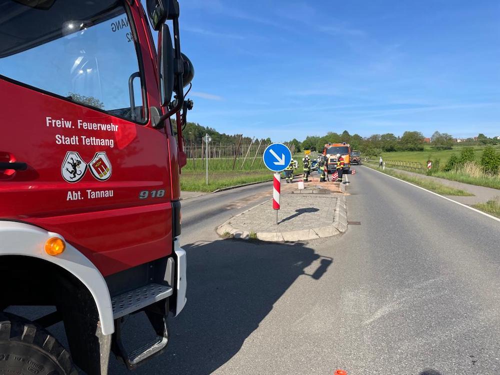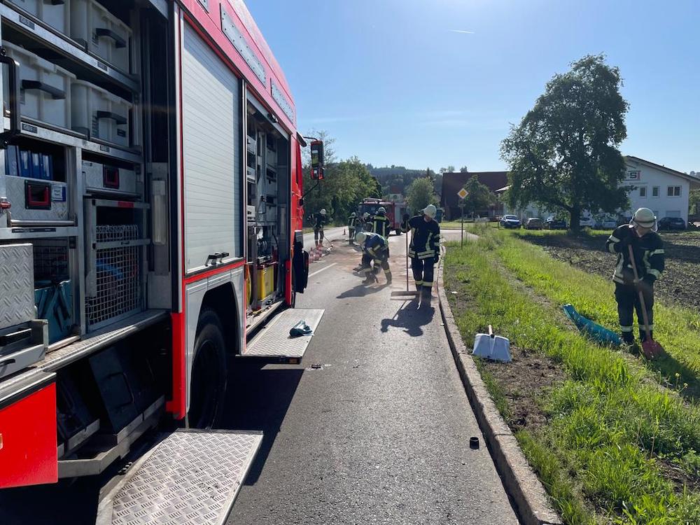Nach einem Verkehrsunfall eines PKW musste die Feuerwehr die ausgelaufenen Betriebsmittel aufnehmen.