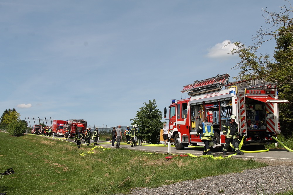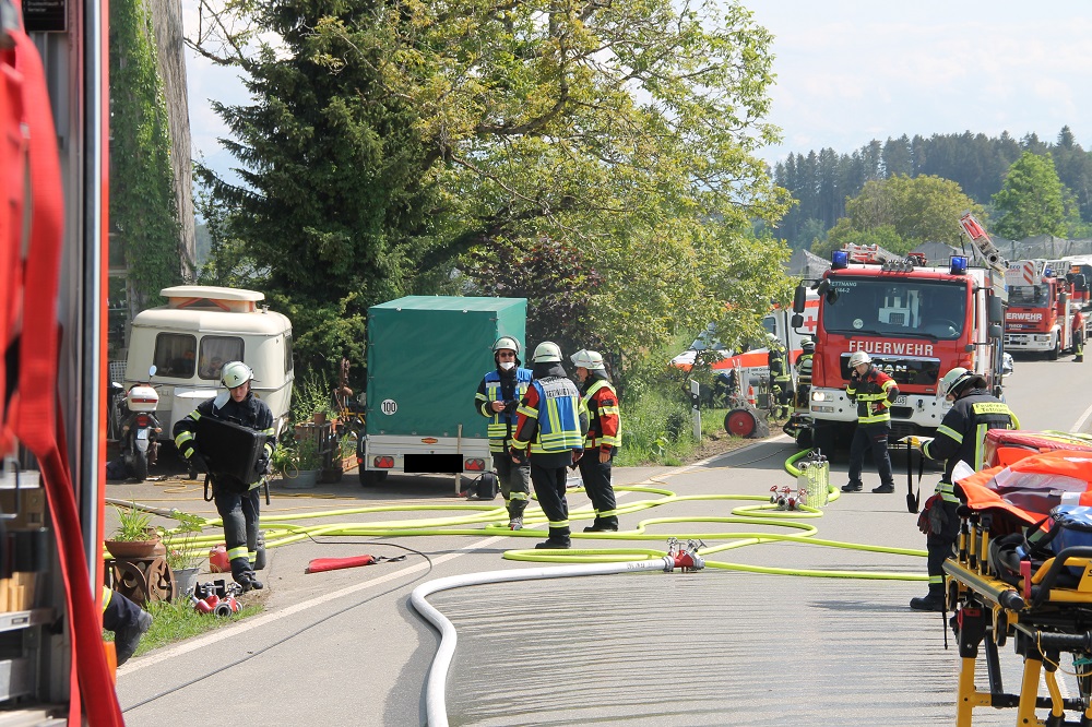 Seitens dem Landratsamt war der erste stellvertretende Kreisbrandmeister Peter Schörkhuber an der Einsatzstelle. Die Schnelleinsatzgruppe des DRK Ortsverein Tettnang führte eine Überprüfung der Vitalwerte der eingesetzten Atemschutzgeräteträger durch.