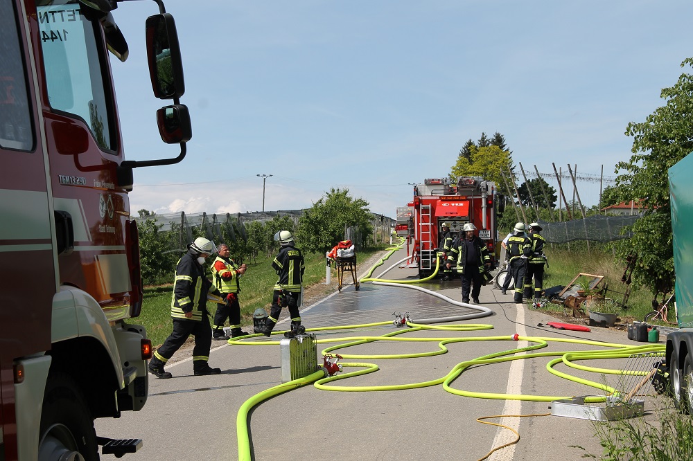 Gegen 14:45 Uhr wurden die Abteilungen Tannau und Tettnang der Freiwilligen Feuerwehr Tettnang unter dem Stichwort "F2 - Brennt Garage" nach Germertsweiler alarmiert.