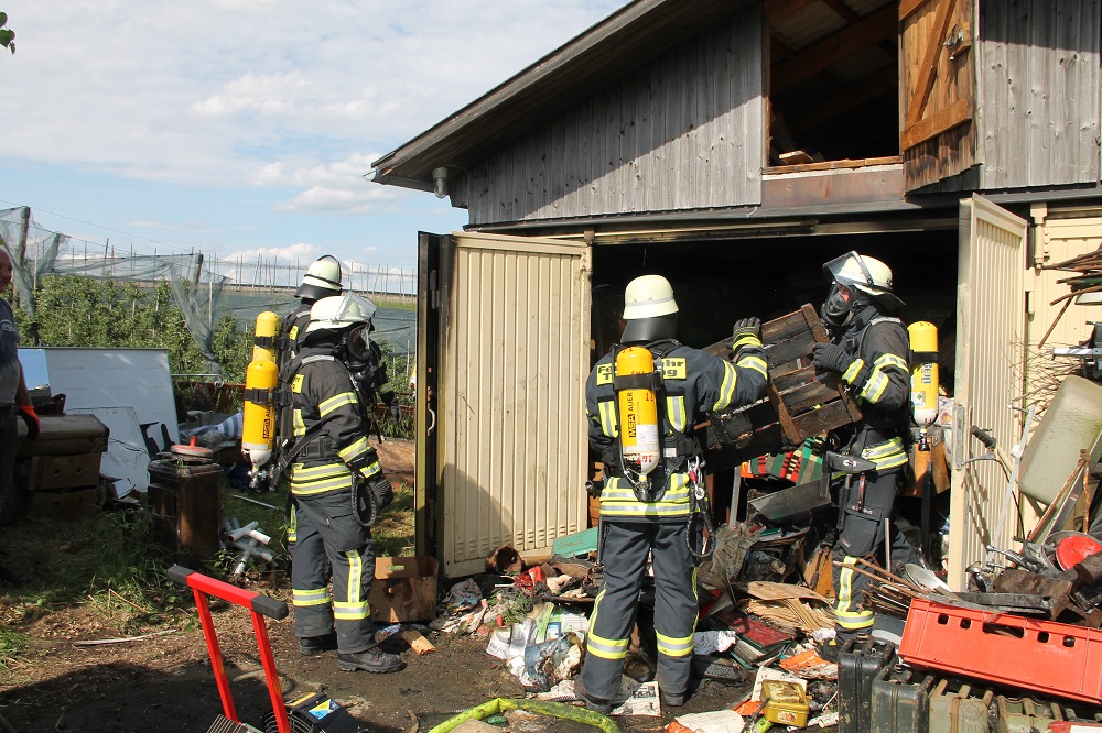 Nachdem das Feuer gelöscht wurde, räumten die Einsatzkräfte die Garage aus.