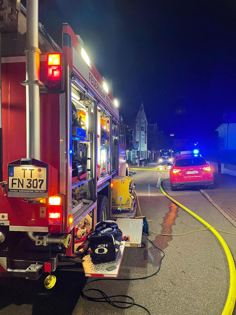 Ein Mülltonnenunterstand in der Nähe eines Gebäudes stand Vollbrand. Aufgrund der Intensität griff das Feuer auch auf mehrere PKWs über. Durch die schnell eingeleitete Löschmaßnahmen unter Atemschutz, konnte eine weitere Ausbreitung verhindert werden. Mittels Wärmebildkamera wurden im Nachgang Glutnester abgelöscht. Die Einsatzgruppe der Bereitschaft des Roten Kreuzes Tettnang sicherte die Arbeit der Feuerwehrkräfte medizinisch ab. Für die Dauer der Maßnahmen war die Straße komplett gesperrt. Die Brandursache müssen die eingeleiteten Ermittlungen der Kriminalpolizei ergeben.