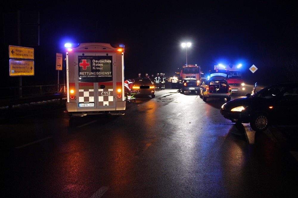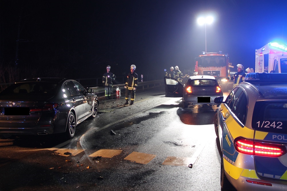 Im Bereich zur Auffahrt der B 467 kollidierten drei PKW miteinander. Durch eine zufällig anwesende Notärztin wurde eine professionelle Erstversorgung durchgeführt. Drei Personen wurden bei dem Unfall verletzt, eine davon schwer.