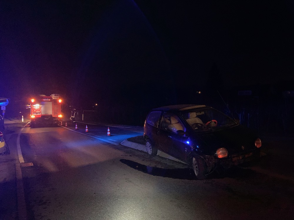 Am Kreisverkehr Bechlingen/Fünfehrlen fuhr ein PKW auf einen Verkehrsteiler auf. Dabei wurden die auslaufenden Betriebsstoffe von der Feuerwehr aufgenommen.