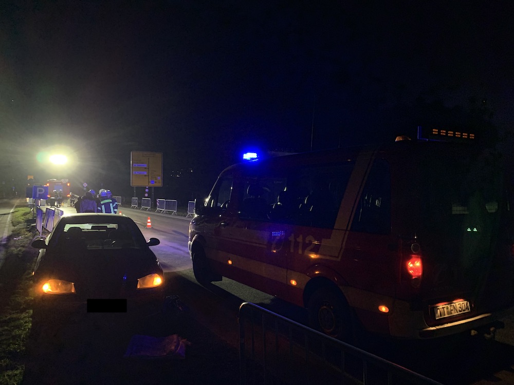 Durch eine Kollision wurde die Ölwanne eines PKW aufgerissen. Das auslaufende Öl wurde aufgefangen und die Ölspur auf der Straße beseitigt.