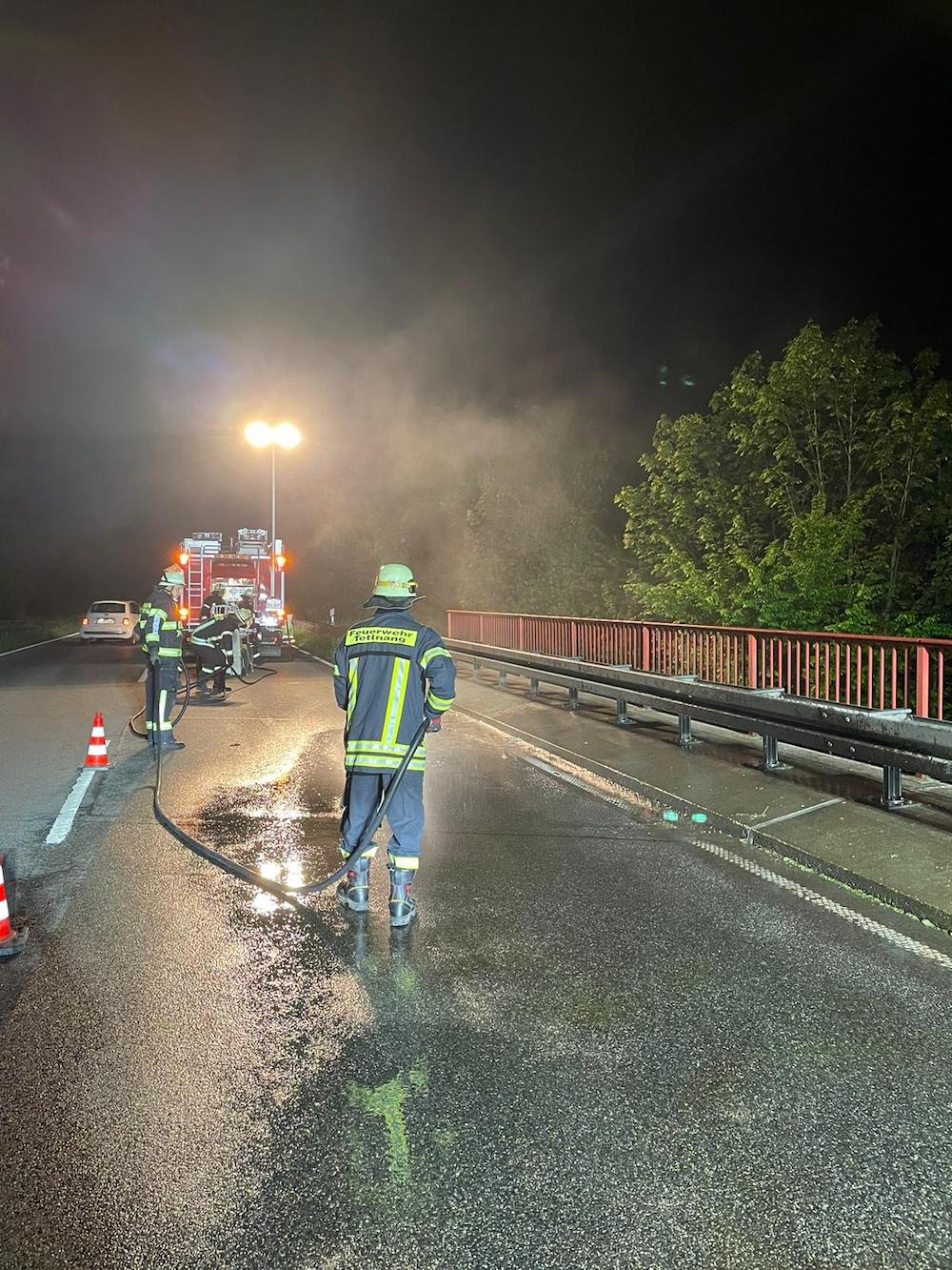 Aufgrund eines Wildunfalls auf der B 467 wurde die Feuerwehr zur Reinigung der Straße alarmiert.