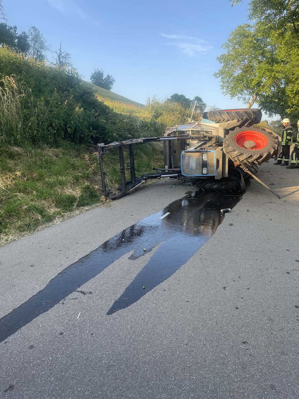 - Umgestürzter Traktor, auslaufende Betriebsstoffe