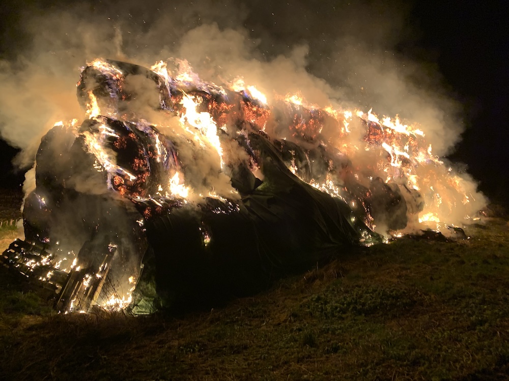 Hopfenstangen, welche unmittelbar neben den Ballen gelagert waren, wurden unter Atemschutz mit einem Löschrohr gesichert.