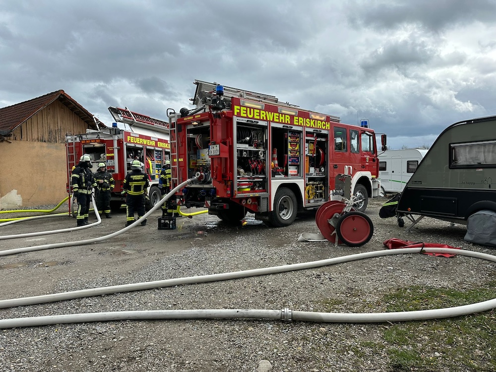 Feuerwehrkräfte der Abteilung Kau und Abteilung Stadt der Feuerwehr Tettnang rückten im Rahmen der Überlandhilfe nach Eriskirch- Dillmannshof aus.