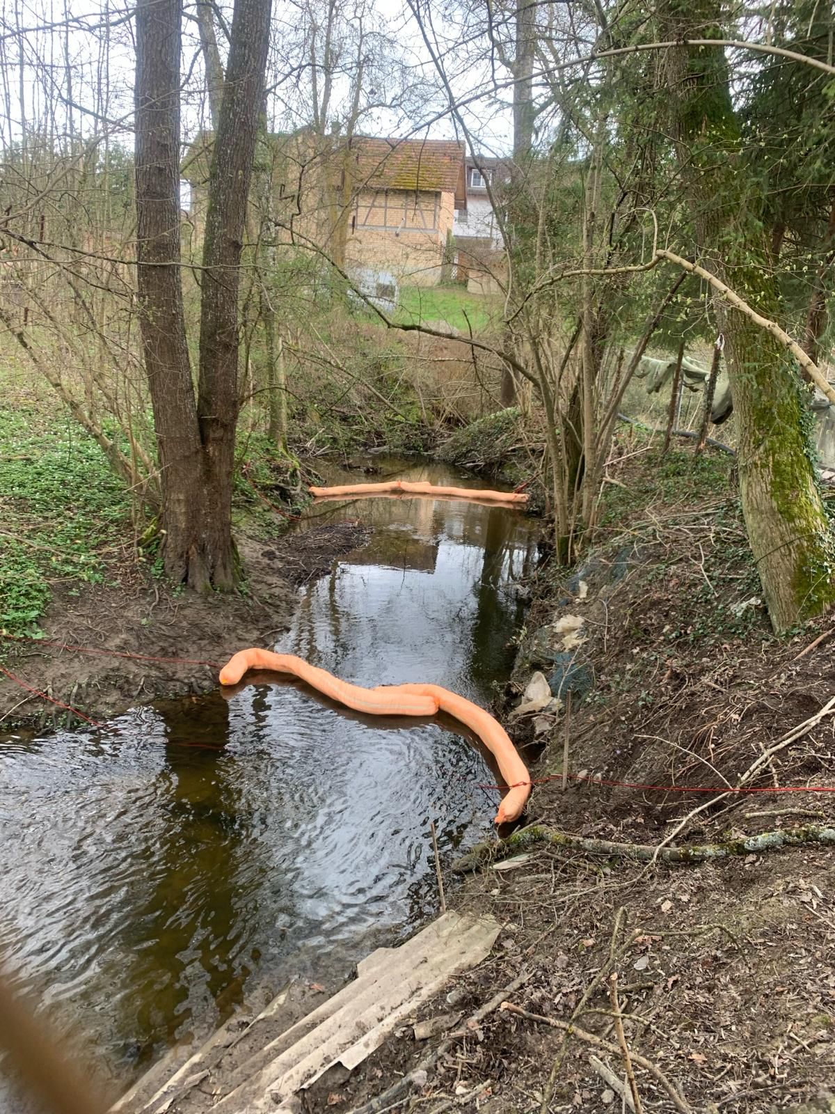 Die Feuerwehr Tettnang unterstütze die KameradenInnen der Feuerwehr Eriskirch mit Atemschutzgeräteträger der beiden Löschgruppenfahrzeuge und mit einem Gerätewagen-Transport. Die Besatzung des GWT setzte in einem naheliegenden Bach, mehrere Ölsaugsperren.
