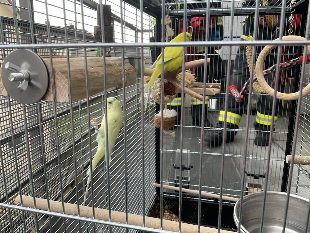 Zwei Kanarienvögel wurden in ihrem Käfig aus der verrauchten Wohnung ins Freie gerettet. Durch Belüftungsmaßnahmen mittels eines Überdrucklüfters wurde die Wohneinheit vom Brandrauch befreit.