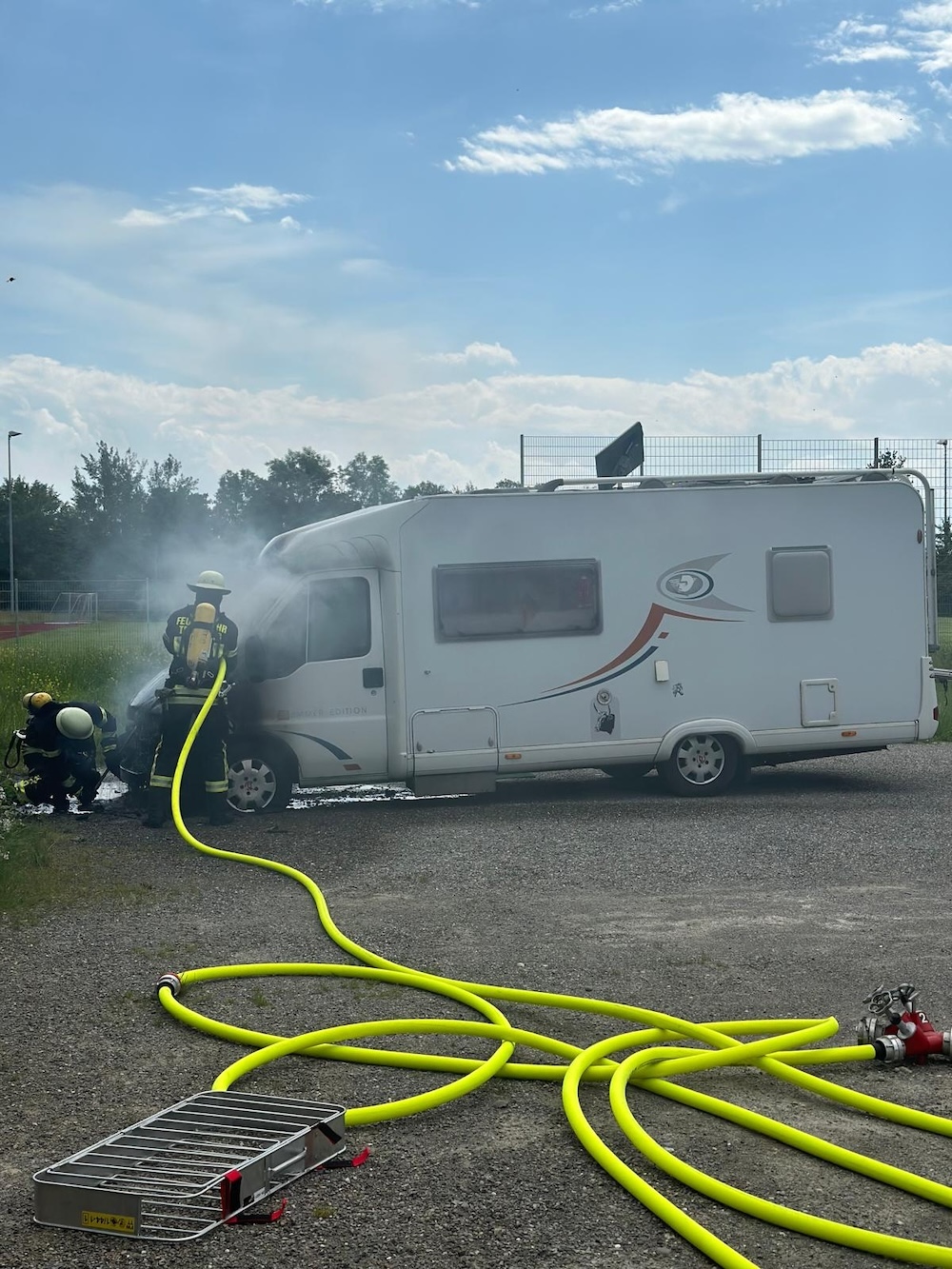 Auf dem Wohnmobil-Stellplatz in der Loretostraße kam es zu einem Brandeinsatz. Das Feuer im Motorraum des Wohmobils wurde mit einem C-Rohr gelöscht. Mittels hydraulischem Werkzeug musste die zugehörige Türe zum Fahrzeug geöffnet werden.