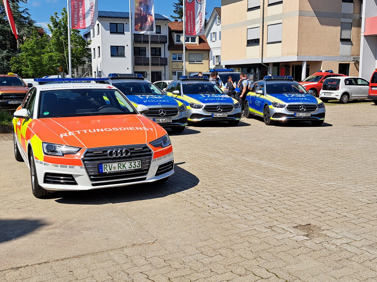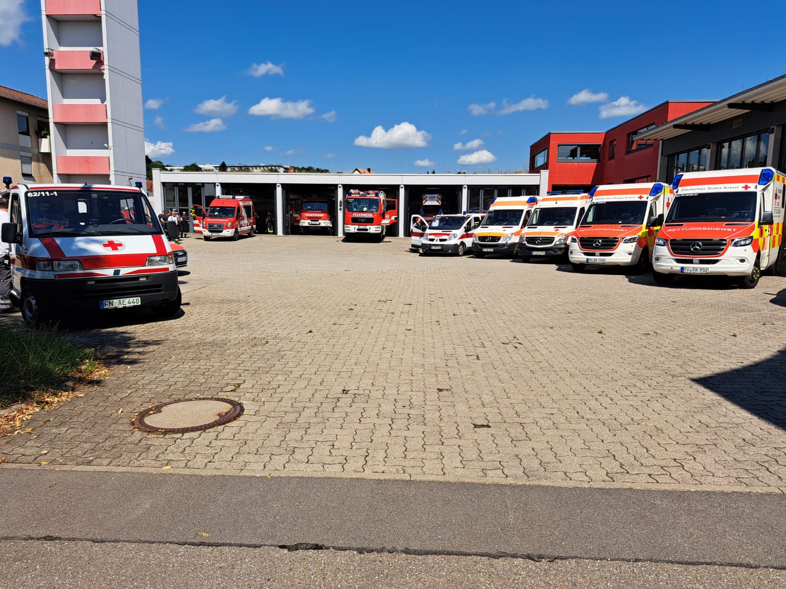 Bei diesem Stichwort dient der Übungshof der Feuerwehr Tettnang als Bereitstellungsplatz für die Kräfte der verschiedenen Organisationen.