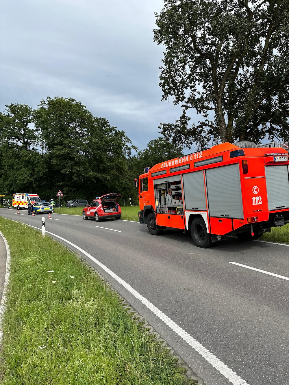 Auf der L 326 in Fahrtrichtung Obereisenbach war ein Motorradfahrer alleinbeteiligt von der Straße abgekommen und verunfallt. Bis zum Eintreffen des Rettungsdienstes wurde der Motorradfahrer von der Feuerwehr betreut.