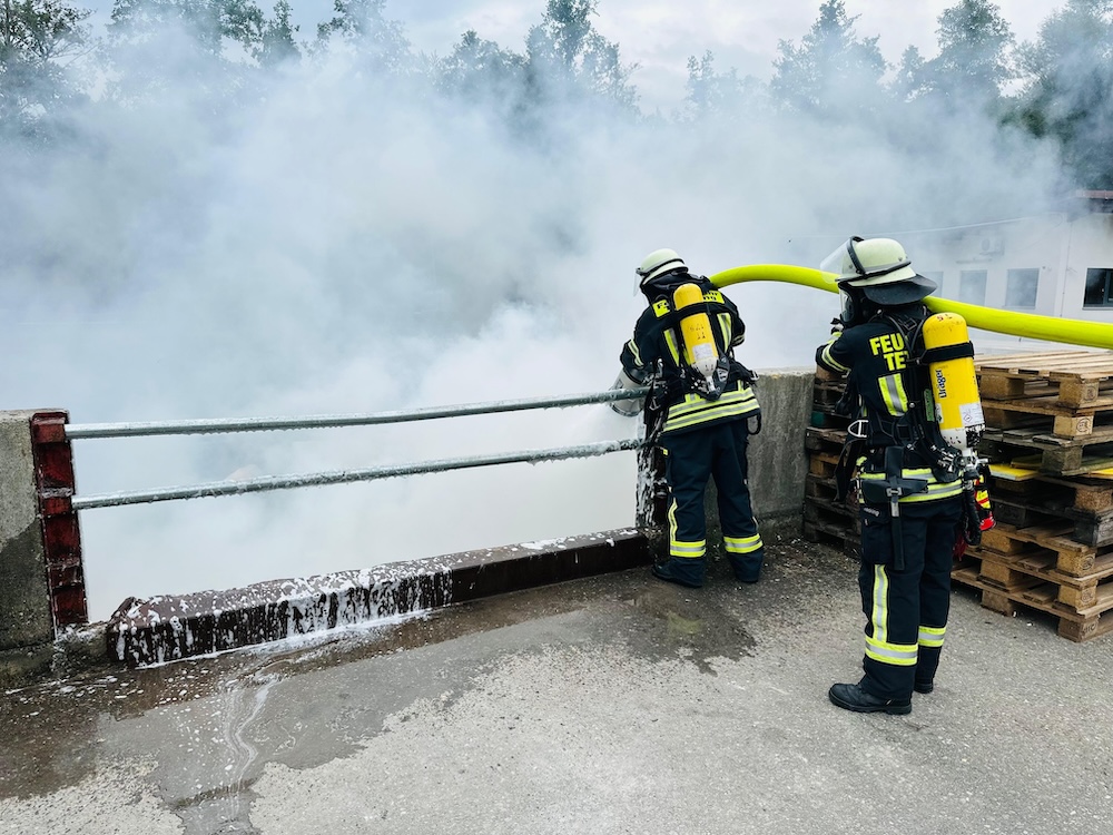 Mit einem Schaumrohr konnte das Feuer schließlich gelöscht werden.
