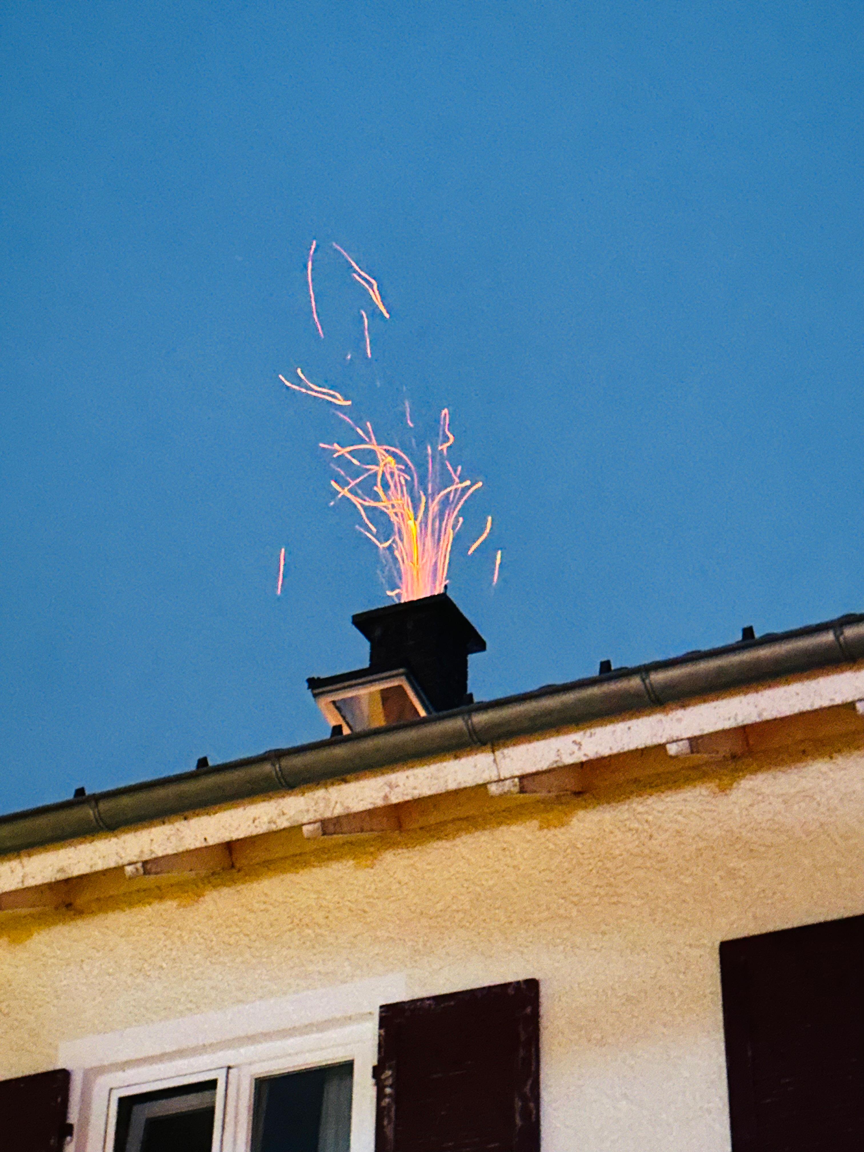 Unter dem Stichwort "F2 - Kaminbrand" wurde die Feuerwehr Tettnang (Abt. Kau und Abt. Tettnang) nach Apflau gerufen.