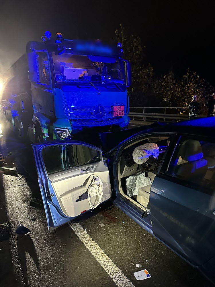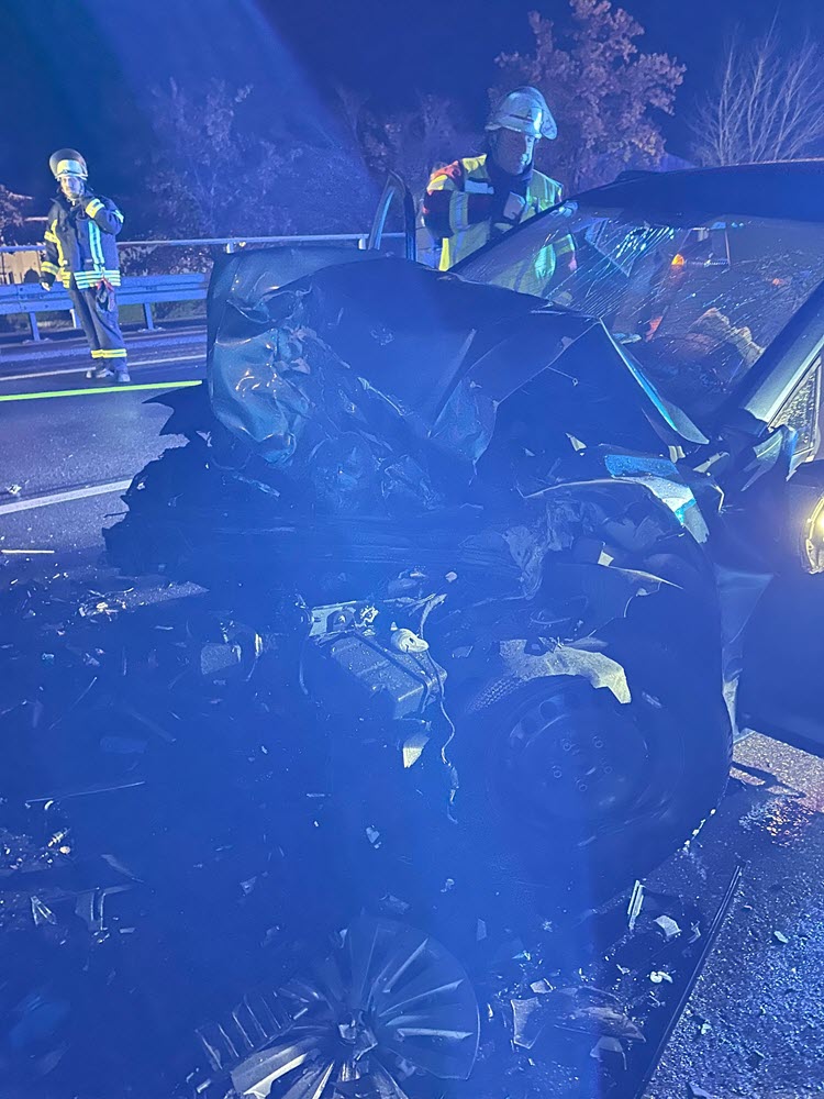 Zwei PKW sowie ein Gefahrgut-LKW (beladen mit 35.000 Liter Diesel) waren kollidiert. Glücklicherweise waren weder Personen eingeklemmt, noch trat Gefahrgut aus. Eine Person wurde jedoch schwer verletzt.
