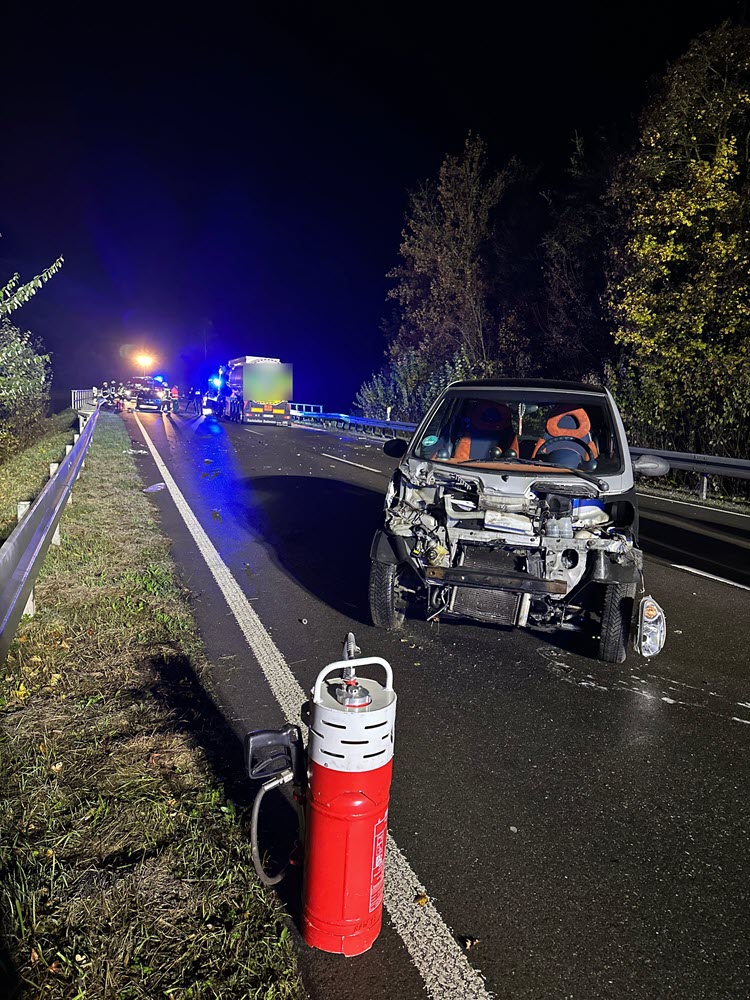 Die Feuerwehr stellte den Brandschutz sicher und unterstützte den Rettungsdienst. Weiterhin wurde die Einsatzstelle ausgeleuchtet und auslaufende Betriebsstoffe aufgenommen.