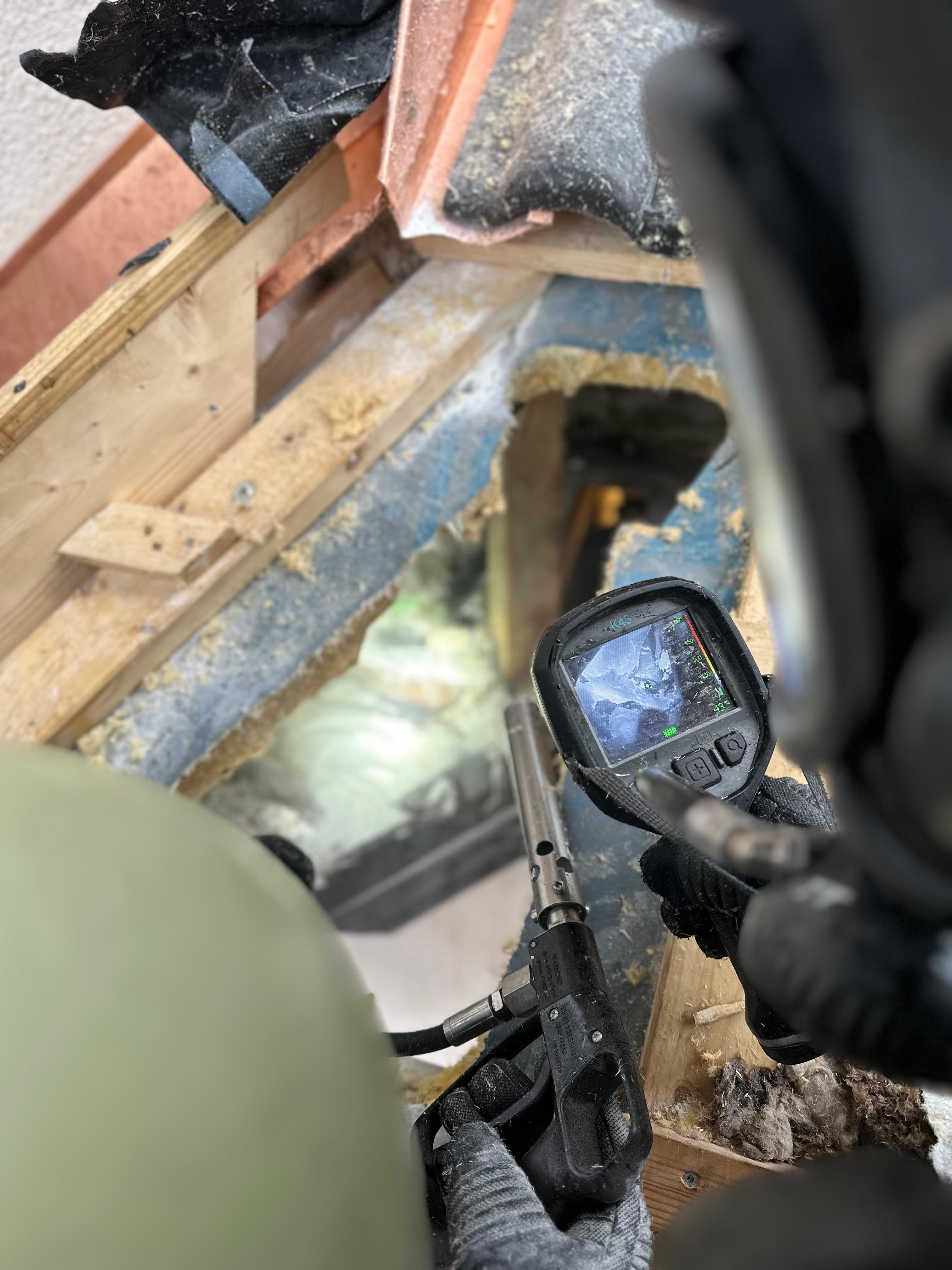 Die Isolierung wurde entfernt und mit Kleinlöschgerät abgelöscht. Um eine weitere Brandausbreitung im Dachbereich ausschließen zu können musste im Innenbereich Teile einer Wand mittels Bohrhammer geöffnet werden, die betroffenen Bereiche wurden abgeslöscht und mittels Wärmebildkamera kontrolliert.