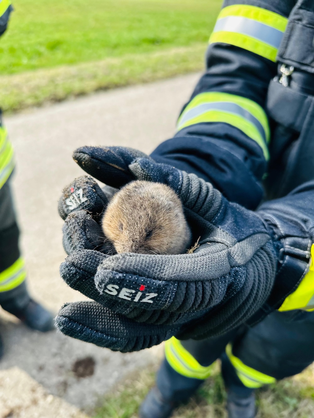 Die Kräfte der Feuerwehr retteten noch eine Wühlmaus und setzte die unverletzte Maus an einer ruhigen Stelle wieder aus. Einsatzstelle der Landespolizei bis zum Eintreffen des Bergeunternehmens übergeben.