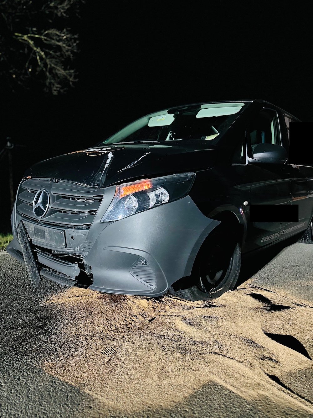 Ein PKW war mit einer Verkehrsinsel kollidiert und war dann etwa 300m später zum Stehen gekommen. Die Ölspur wurde beseitigt und Hinweisschilder gesetzt.