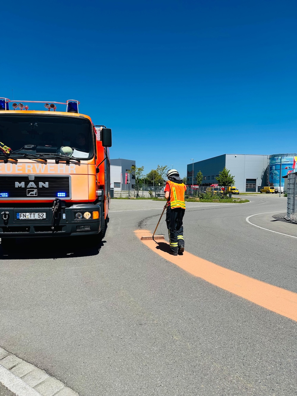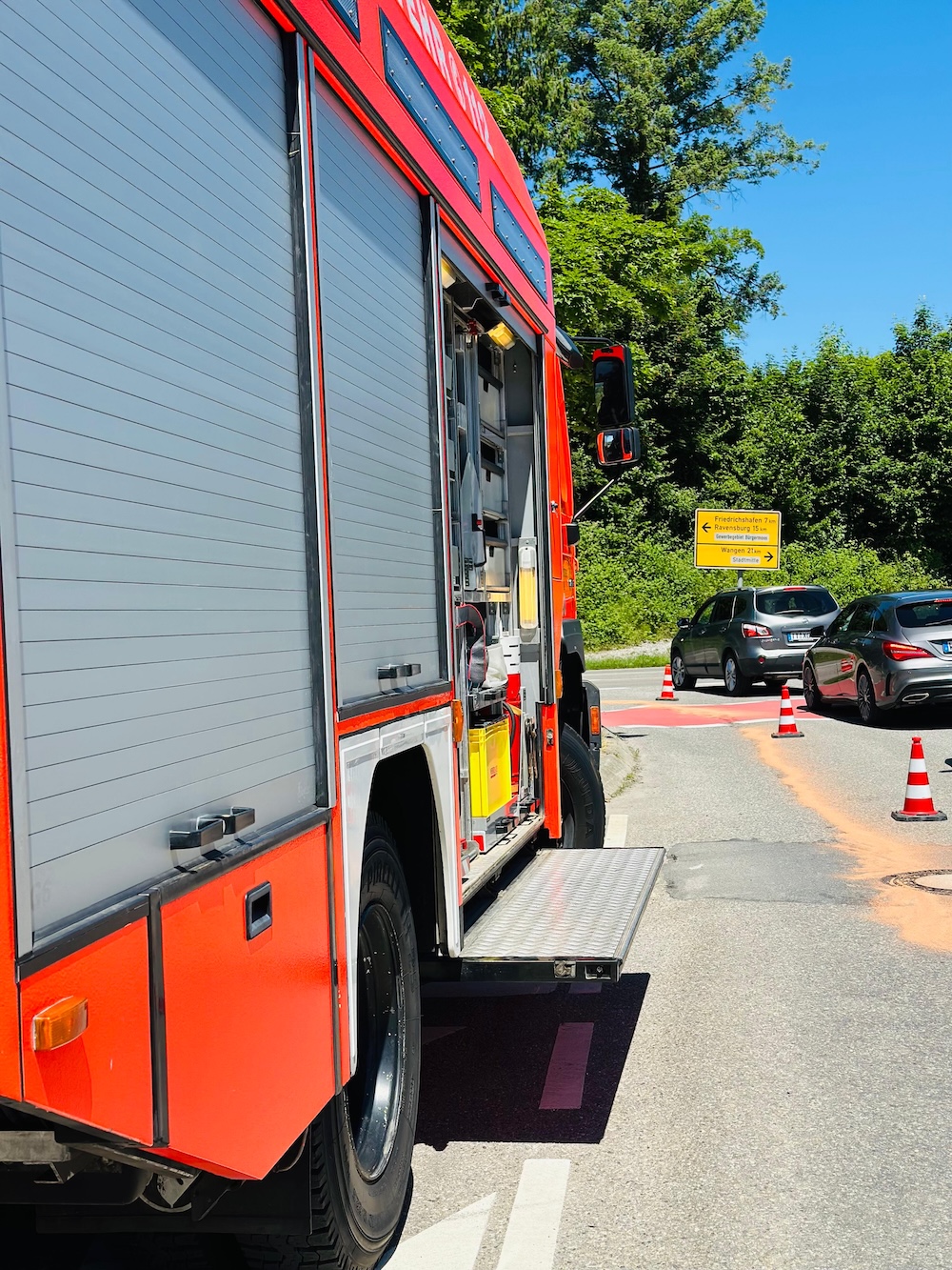 Verursacht durch landwirtschaftliche Zugmaschine durch einen technischen Defekt trat Dieselkraftstoff im Kreuzungsbereich Seestraße/Langenargenerstr. aus, ebenso auf dem Radweg Seestraße/Tobelstraße und in der Marienfelderstraße im Stadtteil Bürgermoos.