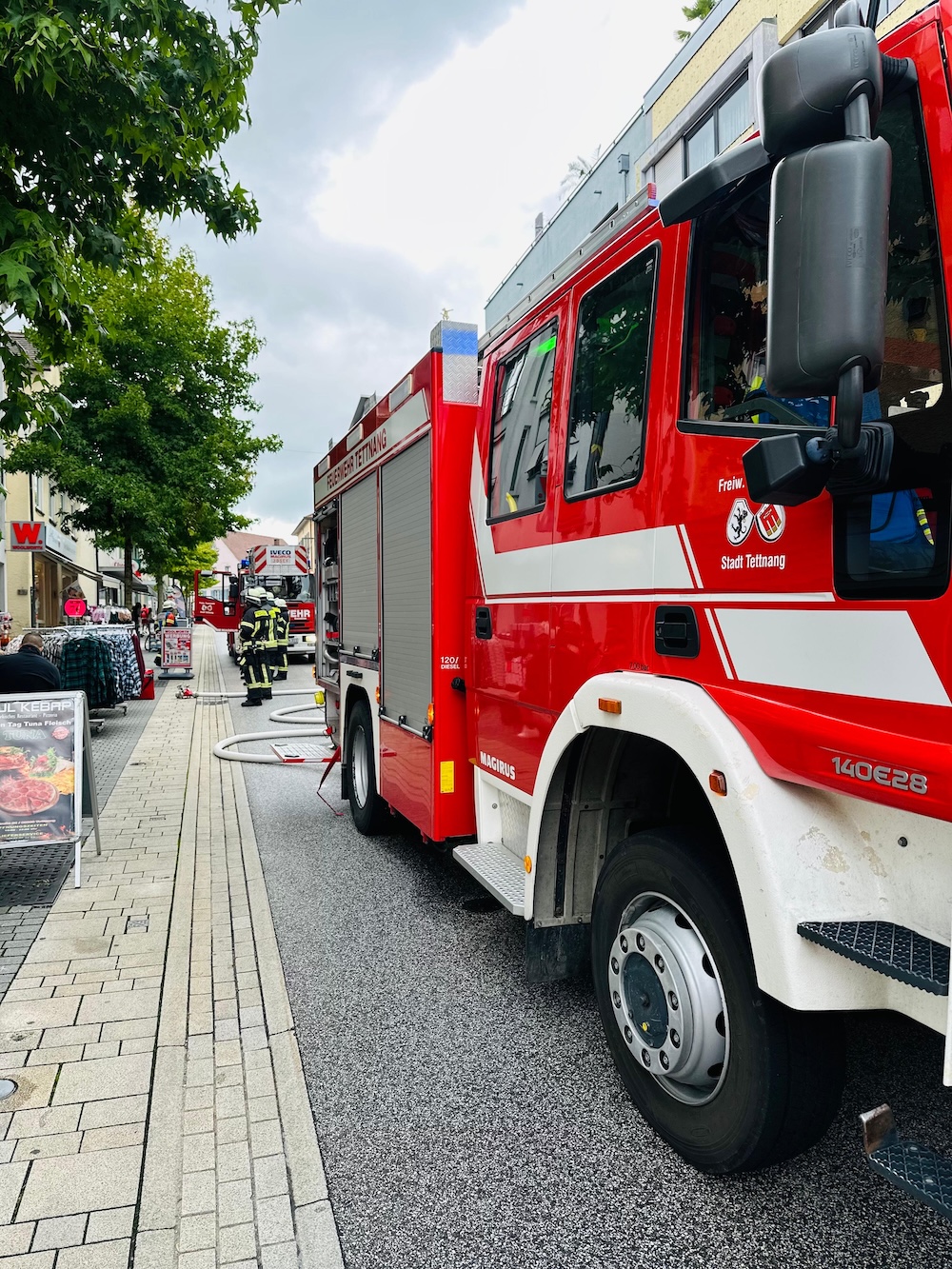 In einem Einzelhandelsgeschäft in der Karlstraße haben Mitarbeiter im rückwärtigen Teil der Filiale Brandgeruch wahrgenommen und die 112 gewählt.