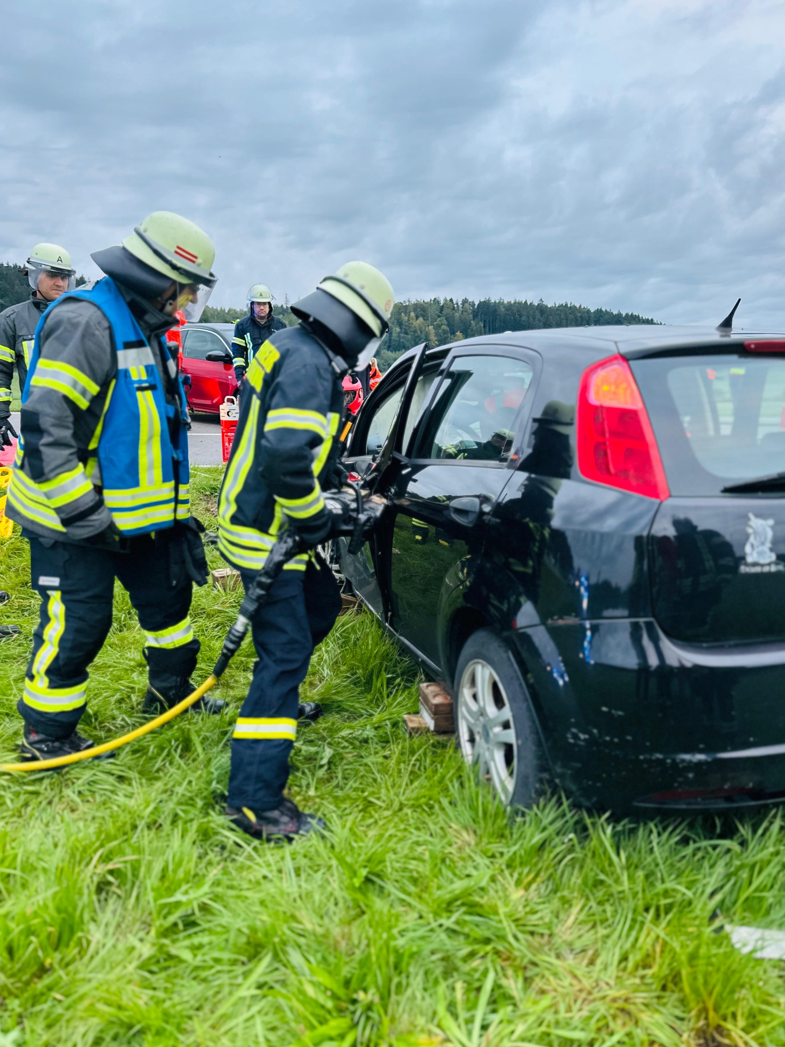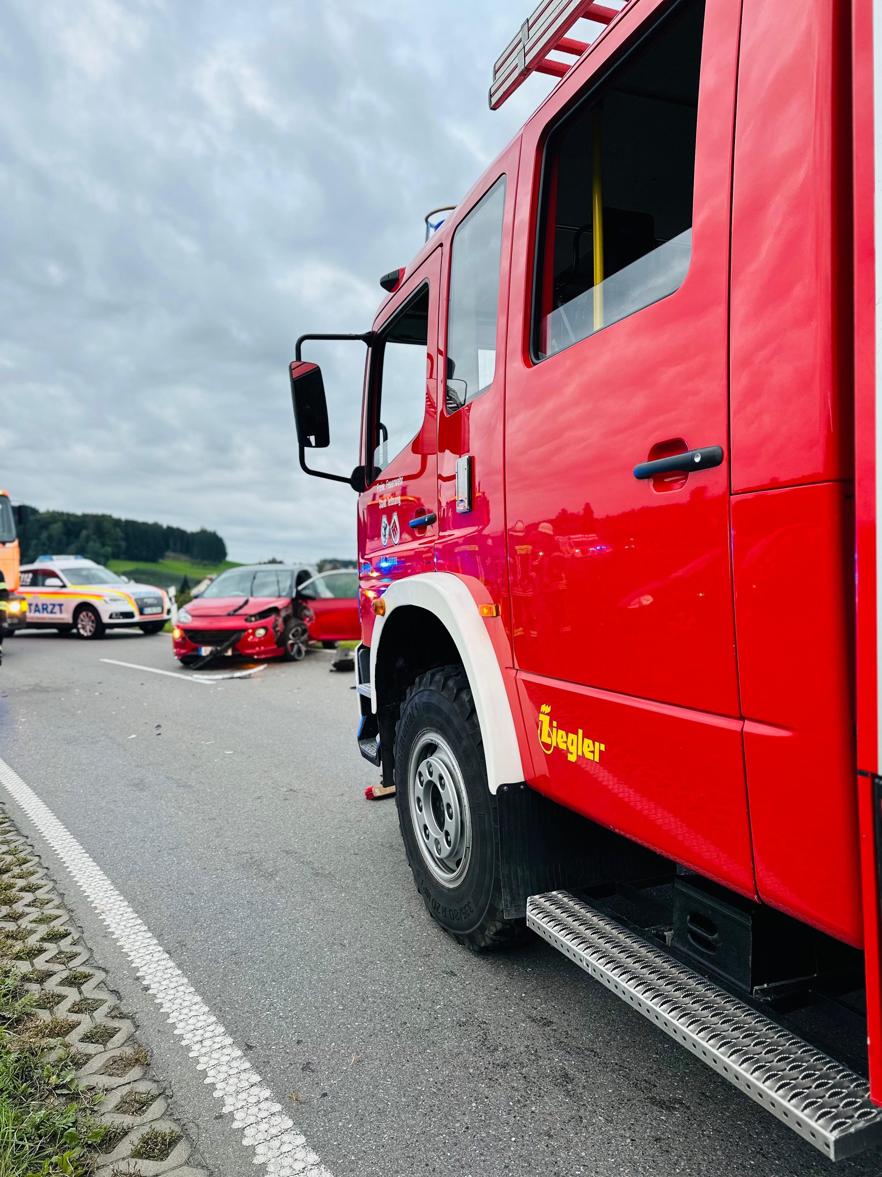 Auf der L 326 in Tettnang-Tannau zwischen Untereisen- und Obereisenbach ereignete sich ein Verkehrsunfall mit zwei beteiligten PKW. Hierbei wurden zwei Personen verletzt, davon eine Person im PKW eingeschlossen aber nicht eingeklemmt. Die Türe wurde mit schwerem Rettungsgerät geöffnet, sodass die Person befreit und an den Rettungsdienst übergeben werden konnte.