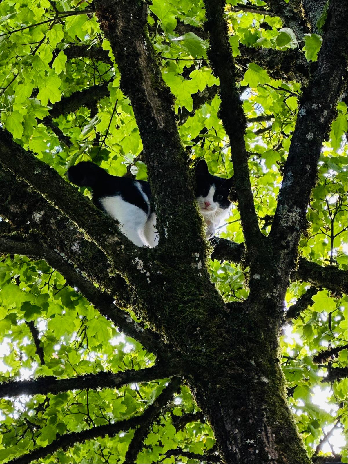 Eine auf einem Baum befindliche Katze stieg seit einem Tag nicht mehr von dem Baum herab. Die Feuerwehr brachte die Katze sicher mittels Steckleiter und Leckerli zu Boden und konnte das Tier an die glückliche Besitzerin übergeben.